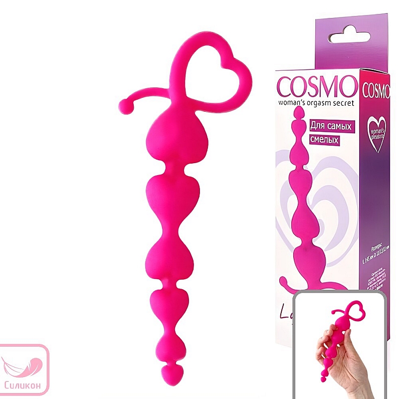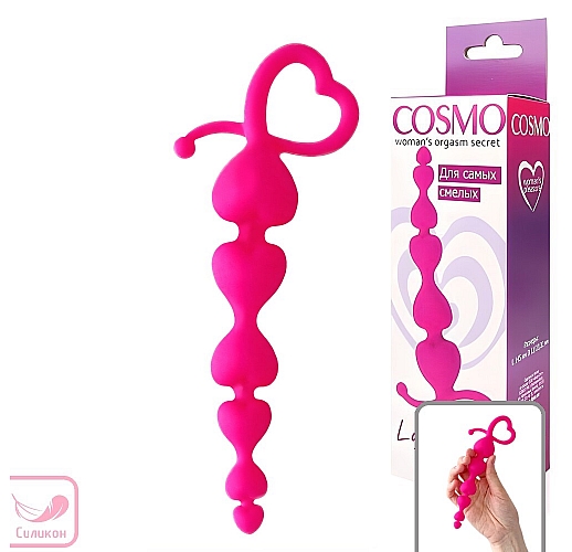 Розовая силиконовая анальная цепочка Cosmo Dream с формой для "лёгкого проникновения" - 14,5 см.