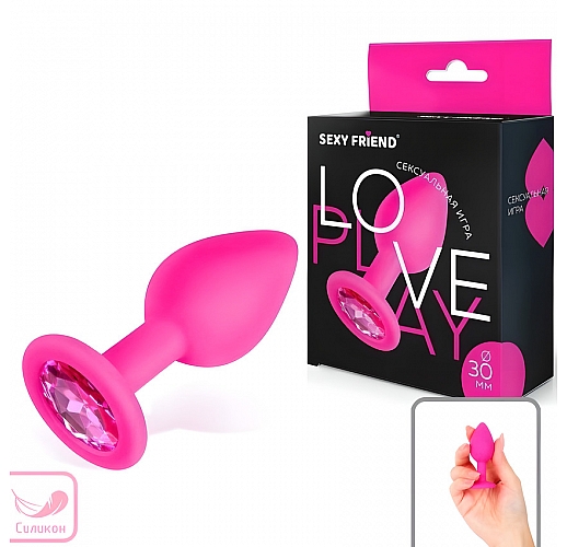 Розовая силиконовая анальная пробка Sexy Friend "Love Play" с розовым стразом - 7,3 см. ⌀ 3 см.
