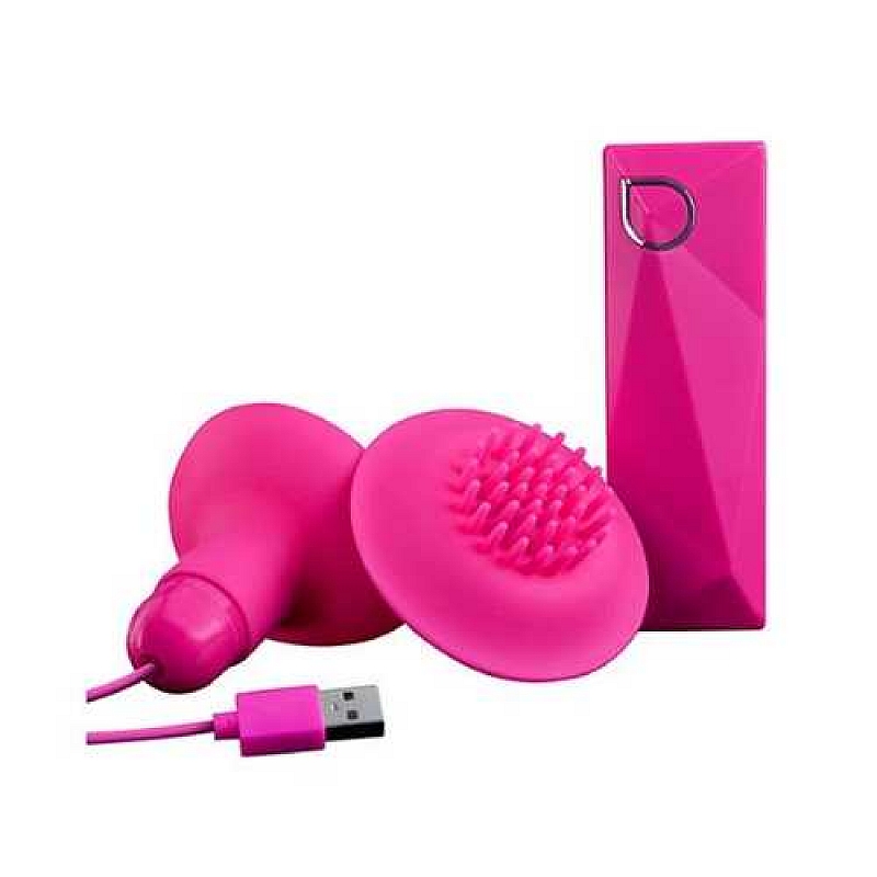 Розовые вибростимуляторы с щёточками для стимуляции клитора и сосков
